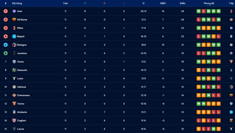 Trong thế giới bóng đá đầy biến động, nơi chỉ một trận đấu cũng có thể làm thay đổi cả cục diện mùa giải, bảng xếp hạng luôn đóng vai trò như chiếc la bàn giúp người hâm mộ theo dõi hành trình đầy kịch tính của CLB yêu thích. Đối với những người đam mê Serie A – giải đấu giàu tính chiến thuật, cạnh tranh căng thẳng và luôn chứa đựng những bất ngờ thú vị – bảng xếp hạng không chỉ là nơi hiển thị vị trí của các đội, mà còn phản ánh nhịp đập của cả mùa bóng.