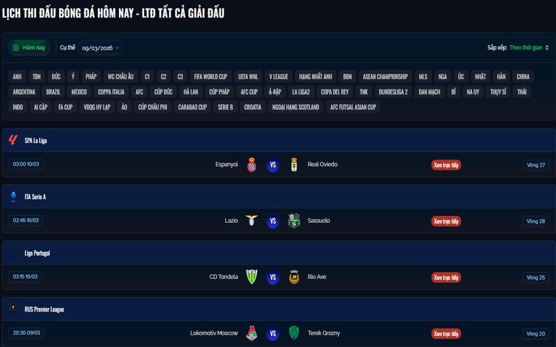 Nhờ sự đa dạng này, người dùng chỉ cần truy cập vào một website duy nhất là có thể theo dõi lịch thi đấu của hầu hết các giải bóng đá nổi bật trên thế giới.