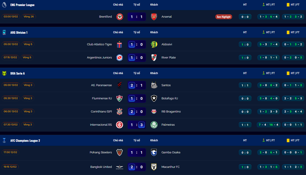 Kết quả bóng đá theo giải đấu: Rakhoi giúp người bận rộn không bỏ lỡ bất kỳ trận nào