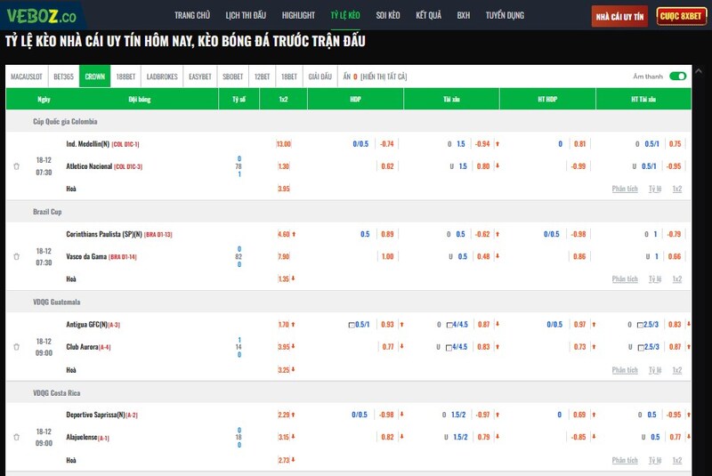 Một tính năng mình cực kỳ thích khi soi kèo bóng đá trên Vebo TV là khả năng so sánh kèo giữa nhiều nhà cái cùng lúc. Chỉ cần nhìn vào bảng, anh em sẽ thấy: