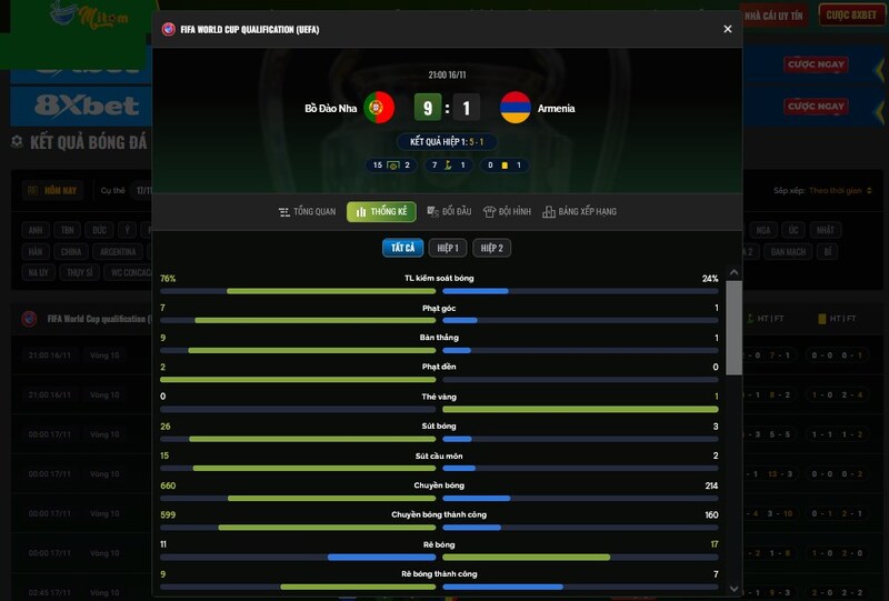Không chỉ có kết quả bóng đá, Mi Tom TV còn cung cấp nhiều dữ liệu liên quan đến trận đấu