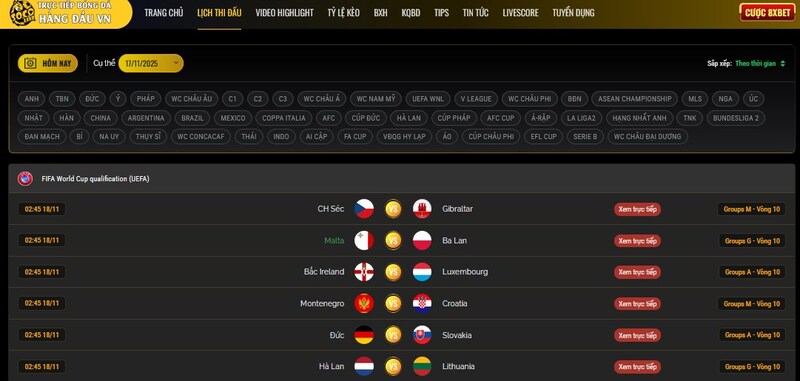 Điều đặc biệt nữa là trang còn cập nhật lịch bóng đá cực kỳ nhanh và chính xác. Anh em chỉ cần mở mục lịch bóng đá là biết trong ngày hôm đó có những trận nào, giờ nào, sân nào, đội nào ra sân – cực kỳ tiện cho anh em bận rộn.