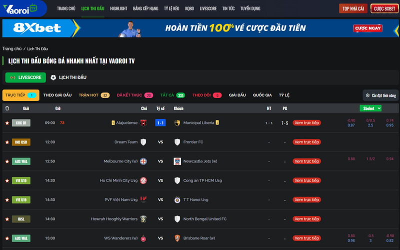 VaoroiTV cập nhật lịch thi đấu bóng đá mới nhất hôm nay