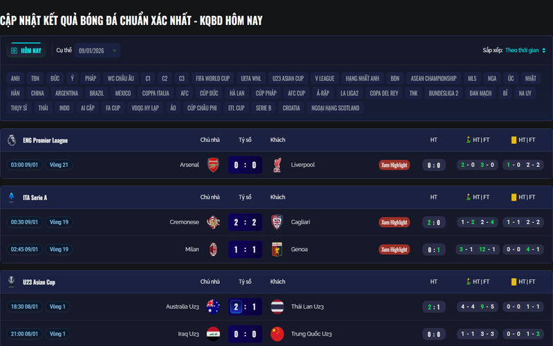 Xôi Lạc TV cập nhật kết quả bóng đá nhanh, đầy đủ và chính xác