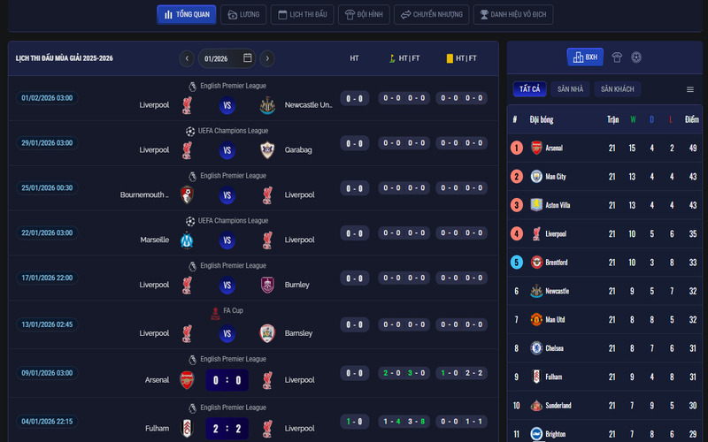 Truy cập vào website, người xem có thể nhanh chóng biết được trận đấu kết thúc với tỷ số bao nhiêu, đội nào giành chiến thắng, diễn biến trận đấu ra sao. Tất cả thông tin đều được cập nhật liên tục, chính xác và trình bày khoa học, giúp người hâm mộ dễ dàng tra cứu và theo dõi.
